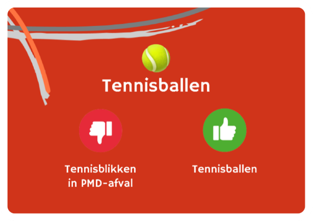 Er staat een grote PMD kliko in de keuken en een container in de milieustraat. De blikken van de tennisballen mogen hierin. Maar pas op: Dunlop heeft nieuwe eco plastic tennisbalcilinders (zie foto) met een papier erin en papieren deksel. Graag even scheiden en het papier in de papierbak gooien.