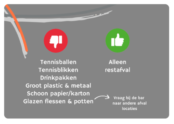 In de hal van het clubgebouw staan nu ook mooie nieuwe afvalbakken waar u handig afval kunt scheiden.
