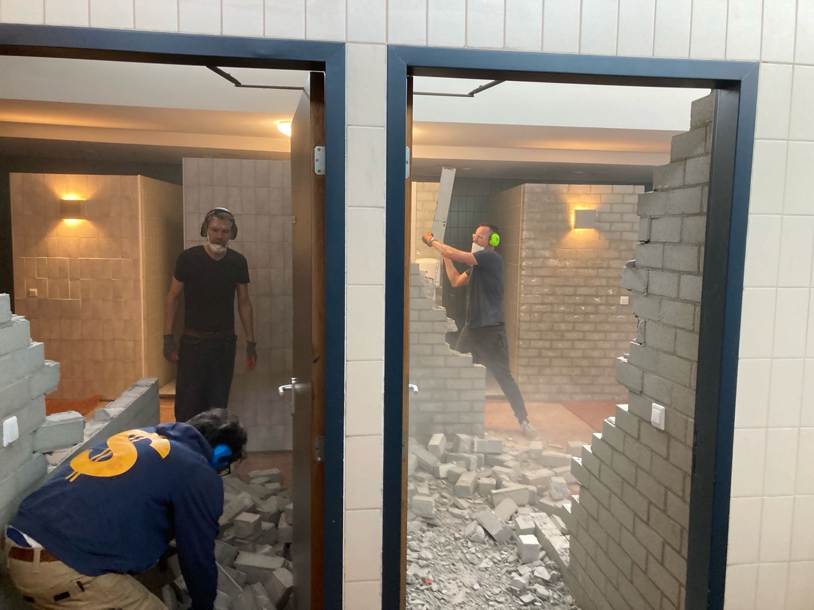 Op 27 februari zijn we gestart met de verbouwing van de kleedkamers. We verkleinen de kleedkamers ten gunste van een grote berging in het midden. Het TamTam hok, de huidige berging, komt zo vrij en krijgt op termijn een andere bestemming. De kleedkamers houden ieder vier douches en een toilet. Het project wordt door eigen leden uitgevoerd.